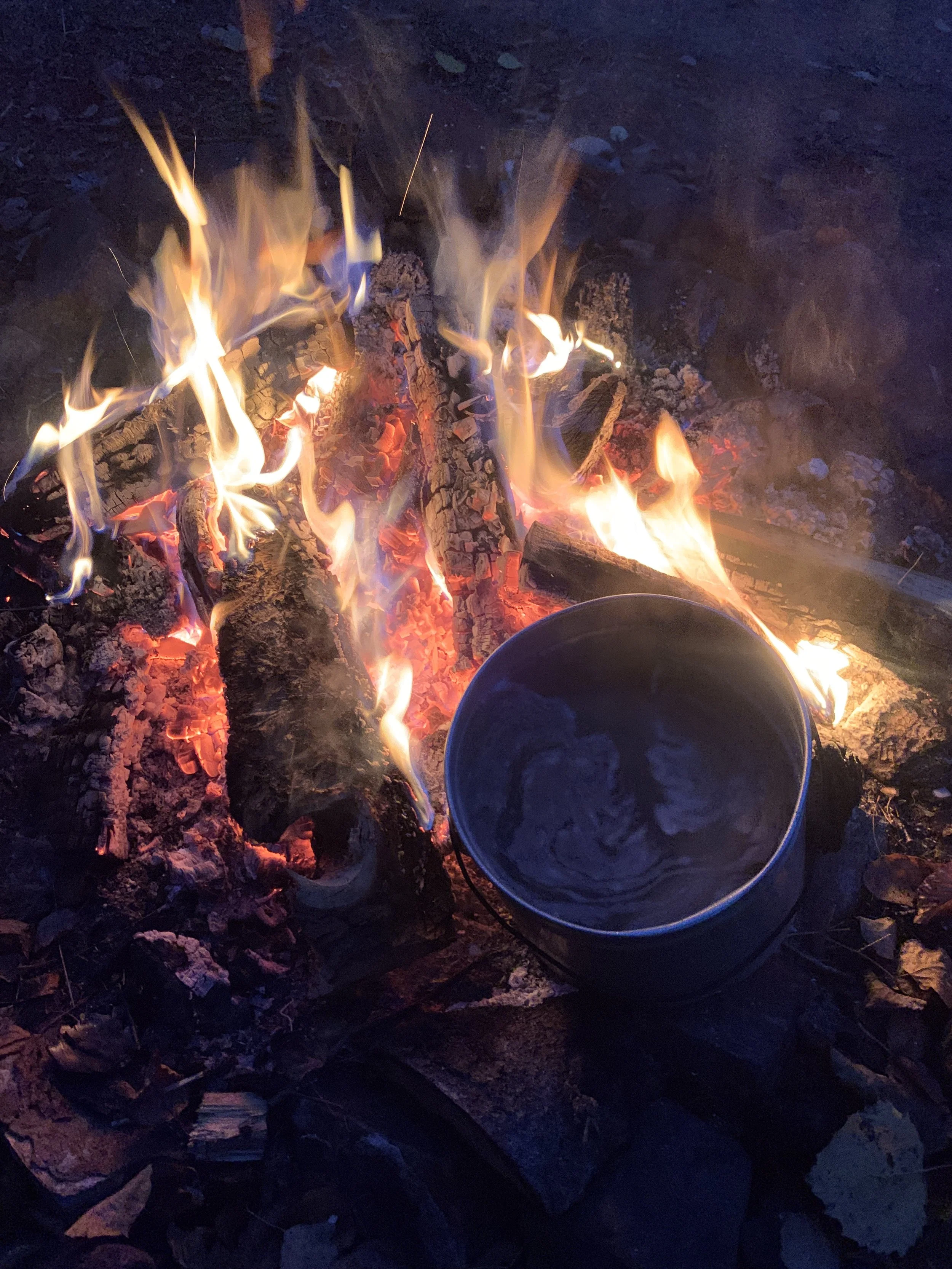 The hike was hot and exhausting. We went to the big lake to purify water and nap. Taking your boots off and soaking your feet in the ice cold water is hard to beat. Venison casserole for dinner, was the best tasting meal yet. Sitting the big lake stand today watching the crossing behind it. Called what I believe to be a young bull in. Dad was in the creek stand 200 yards away calling as well. The went and winded him just out of sight.